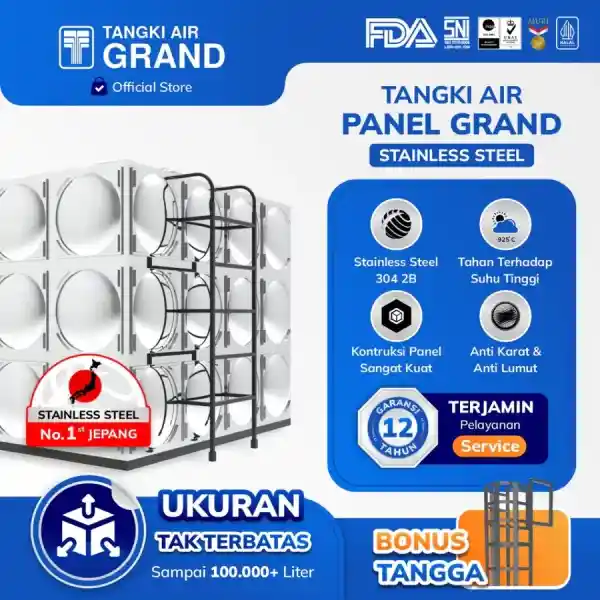 Toren Tandon Air Tangki Stainless Tedmond Grand Panel Anti Lumut & Sertifikasi Halal Pertama di Indonesia Garansi 12 Tahun